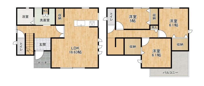 | 間取り | 洋 6.1・6.1・5 LDK 16.6 | 築年数 | 2025年(令和7)5 月 |